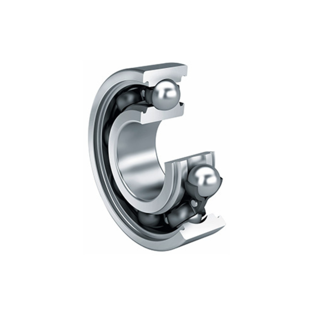 Deep groove ball bearings are versatile, self-retaining bearings. These bearings, which are simple in design, robust in operation, and easy to maintain, are available in single-row and double-row designs and open and sealed variants. Single-row deep groove ball bearings are the most frequently used type of rolling bearing. They are produced in numerous sizes and designs and are particularly economical. Due to their very low frictional torque, open bearings are suitable for high and very high speeds. Bearing designs with gap seals are suitable for high speeds. Single-row deep groove ball bearings are only suitable for compensating static misalignments to a very limited extent. As a result, the bearing positions must be well aligned. Double-row deep groove ball bearings correspond in their structure to a pair of single-row deep groove ball bearings but have two raceway grooves, each with one row of balls. Due to the larger number of rolling elements, they can be subjected to higher loads than single-row deep groove ball bearings. Double-row bearings are used where the load-carrying capacity of single-row deep groove ball bearings is not sufficient. Since the bearings can also support loads due to tilting, they are suitable for particularly short shafts that are supported by only one bearing.